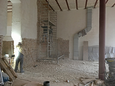 23.01.2020 Entfernung des alten Wandputzes in den großen Ausstellungsräumen im Brauhaus EG. |