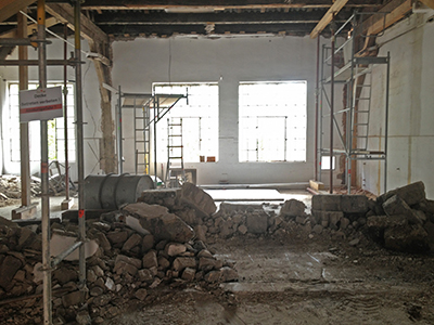 01.09.2020 Ungewohnte räumliche Großzügigkeit nach den Mauerabbrüchen im Kühlschiff. |