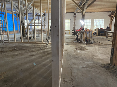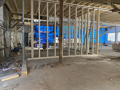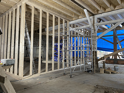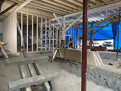 11.11.2020 Holzständerkonstruktionen für die Zwischenwände im Kühlschiff. |