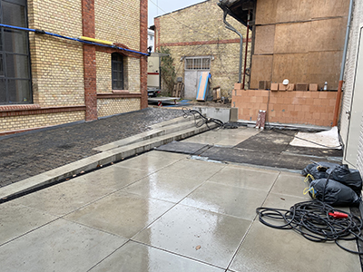 Fertiggestellte Oberflächen zwischen Sudhaus und Brauhaus. |