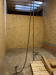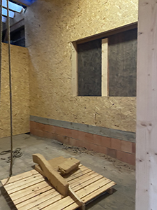 15.12.2020 Beplankung der Holzständerkonstruktion in einem der Lager im Kühlschiff. |