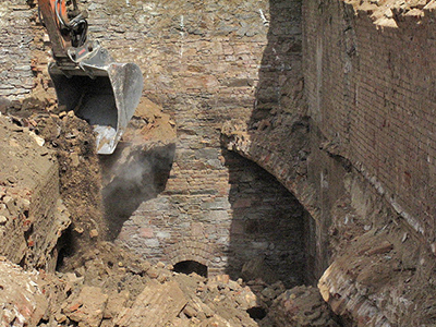 27.04.2018 Abbruch der Gewölbemauern der ehemaligen Eiskeller ... ein Trauerspiel! Was für eine handwerkliche Kunstfertigkeit steckt hinter diesen seinerzeit von Hand gemauerten Gewölben. Und wie viel Arbeitszeit ...! |