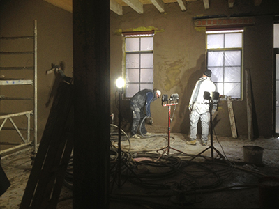 07.12.2018 Trocknender Wandputz im künftigen Malzhaus-Atelier und Putzarbeiten im Ausstellungsbereich des Malzhauses. |