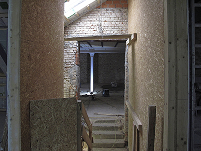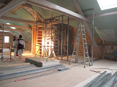 Putz- und Trockenbauarbeiten im Obergeschoss des Malzhauses. |