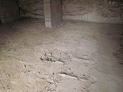 09.02.2019 Im Kellergeschoss des Pferdestalls werden schöne und intakte Solnhofener Kalksteinplatten vom alten Fußboden geborgen. |