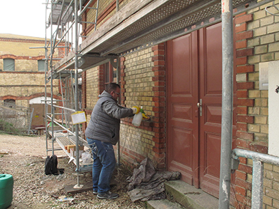 Die Fassadensanierung am Mühlenhaus beginnt ... |