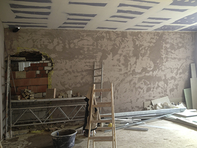 10.03.2019 Links: Neue Türstürze an den Treppenhauszugängen Rechts: Das veputzte Atelier im EG Malzhaus. |