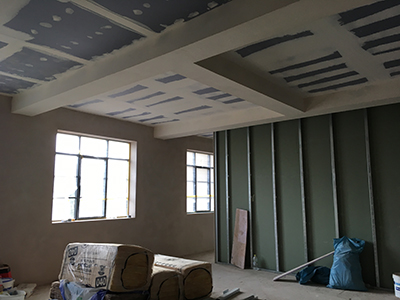 12.03.2019 Verputze Decke und Deckenunterzüge im Atelier des Malzhauses. |