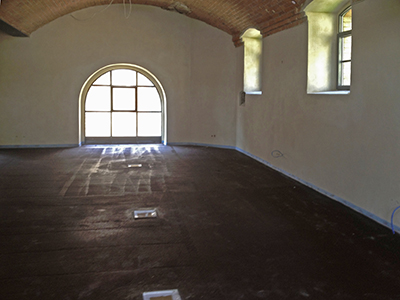 04.06.2019 Das Obergeschoss des Sudhauses. Der Boden ist vorbereitet für die letzte feine Schicht des Fußbodenestrichs. |