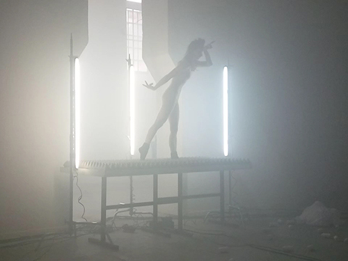 "UNRUHE". Perfomance von Mareike Buchmann und dem Ensemble impuks m in der Walkmühle.