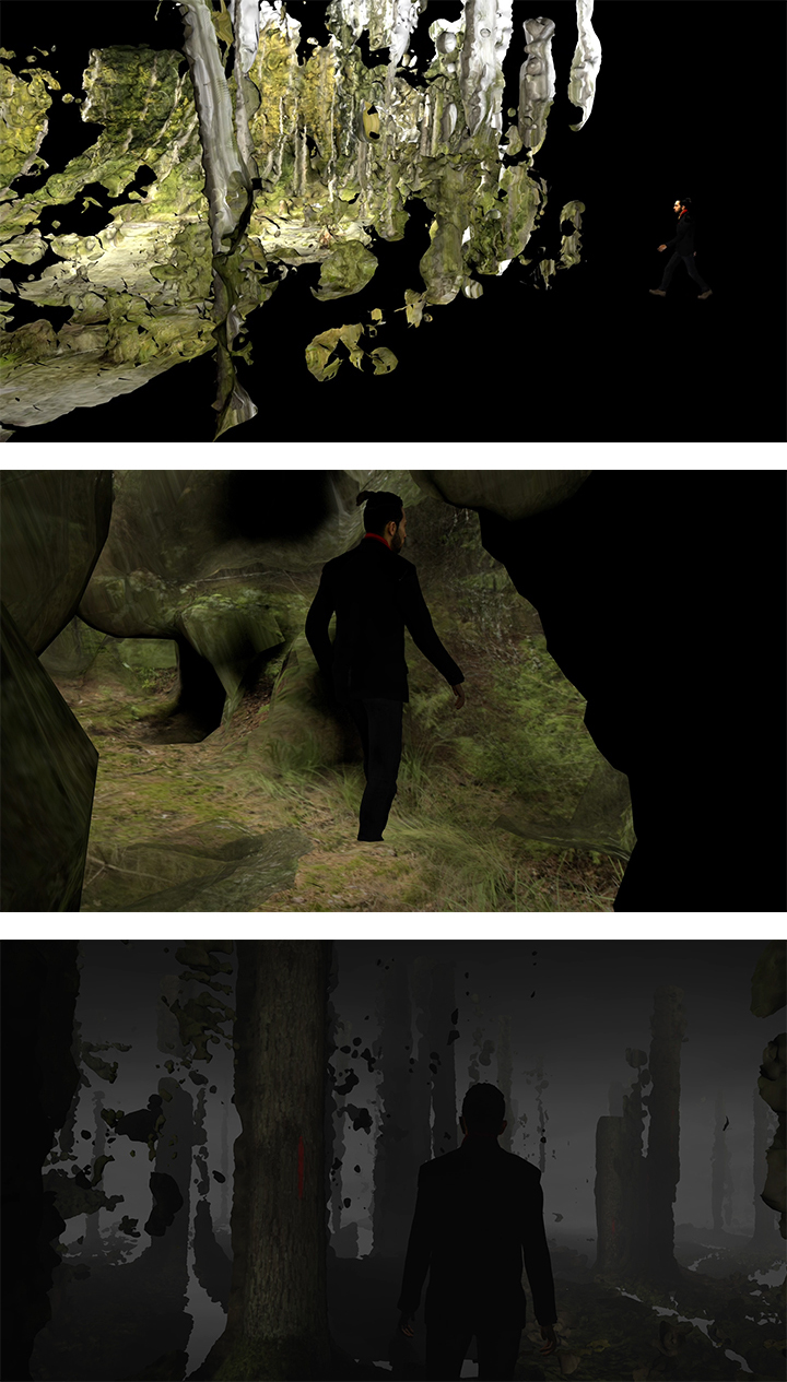 | For Forest on Location (2018), the artists collected extensive photographic material in Europe's last primeval forest - the Bialowieza Forest in Poland. It is a video installation that transports the viewer into the soft, green darkness of a forest inhabited by a single protagonist (the avatar of Iranian opera singer Shahram Yazdani), who walks, sings and floats through the ground (or rather grounds), which becomes a fluid and permeable surface and at some moments dissolves into a generic digital void without gravity or direction. The fairy-tale forest scene is transformed into a virtual world reminiscent of a movie set composed of free-floating fragments. The scene is a meta-image that entices the viewer to enter, to float effortlessly with the melancholic melody and experience a gentle, nightmarish awareness that everything in this world is a liquid canvas with no solid ground. Forest on Location is based on the digital montage of a variety of photographic images taken in the forest of Bialowieza into 3D models of tree trunks and the forest floor. Their surface is interrupted by a series of traces intentionally left there, and the images, which at some moments are only outlines, reveal their medium as a digital surface that is infinitely malleable, a meta-image that reveals the operations of its own medium. Nevertheless, Forest of Location retains a certain documentary weight related to the photographic image's claim to do justice to the reality of its subject, to capture its material presence and to freeze it in time. Apart from being at the heart of the concepts of "evidence" or "document", concepts that are closely linked to our understanding and reconstruction of the past, photography is a medium with an extraordinary plasticity and a history of its own that is changing very rapidly today. We photograph more and more, the images we see on screens permeate and even define our experience, our self-image and our memory. The digital surface of photographs is no longer an image that is viewed or looked at. It replaces the hard outlines of objects and is endowed with a different potentiality; it is no longer a still image that registers a moment in the past, but a surface that folds the past into a malleable present, in which the image becomes a tactile surface that invites you to zoom and scroll, edit, superimpose and share. The artists Persijn Broersen (Delft, 1974) and Margit Lukács (Amsterdam, 1973) have formed a duo since 2002. They both attended Amsterdams Gerrit Rietveld Academie, the Sandberg Instituut and the Rijksakademie van Beeldende Kunsten. With a plethora of technology that unceasingly quotes, references, embeds and re-tweets, the way stories are told has profoundly changed. Much of Broersen and Lukacs' practice is informed by these questions, deeply rooted in their interest in the workings of media and technology, intertwined with the history of ornament and the politics of depicting landscapes culled from political, mythological, (art)historical and filmic sources. Their work, consisting of layered projections, digital animations and spatial installations, has been exhibited by renowned institutions and organisations worldwide, including the Biennale of Sydney (Australia), Rencontres Arles (FR), Wuzhen Biennial Now Is The Time (CN), Stedelijk Museum, Amsterdam (NL), FOAM (NL), MUHKA, Gent (BE), Centre Pompidou, Paris (FR), Shanghai World Expo (CN), Todays Art Museum (CN), Kröller Müller, Otterlo (NL), Haus der Kunsten der Welt Berlin (DE) / Louvre Paris (FR) for Rencontres Internationales Paris-Berlin and more. Recent and upcoming shows are among others: The Botanical Revolution, Centraal Museum Utrecht (NL), And the Forests will Echo with Laughter, Eres-Stiftung, Munchen (DE), The Real of Unreal (solo) A4ArtMuseum Chengdu (CN), Forest on Location (solo), A-Space, Toronto (CA), On Earth at Le Lieu Unique, Nantes (FR), Shaping the Invisible World. From Radical Cartography to Virtual Landscapes at HeK, Basel (CH) and Rubble: A Matter of Time at Auckland Art Gallery (NZ) curated by Juliana Engberg. |